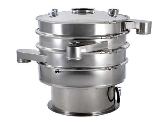 圓形振動篩是一種高精度細粉篩分設備,其噪音低、效率高,快速換網需3-5分鍾,全封閉結構,適用於粒、粉、粘液等物料的篩分過濾。圓形振動篩是由直立式電機作為激振源,電機上、下兩端安裝有偏心重錘,將電機的旋轉運動轉變為水平、垂直、傾斜的三次元運動,再把這個運動傳遞給篩麵。調節上、下兩端的相位角,可以改變物料在篩麵上的運動軌跡。